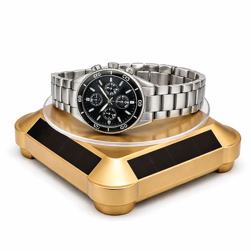 Un exhibidor giratorio automático que hace que tus gadgets, figuras o accesorios